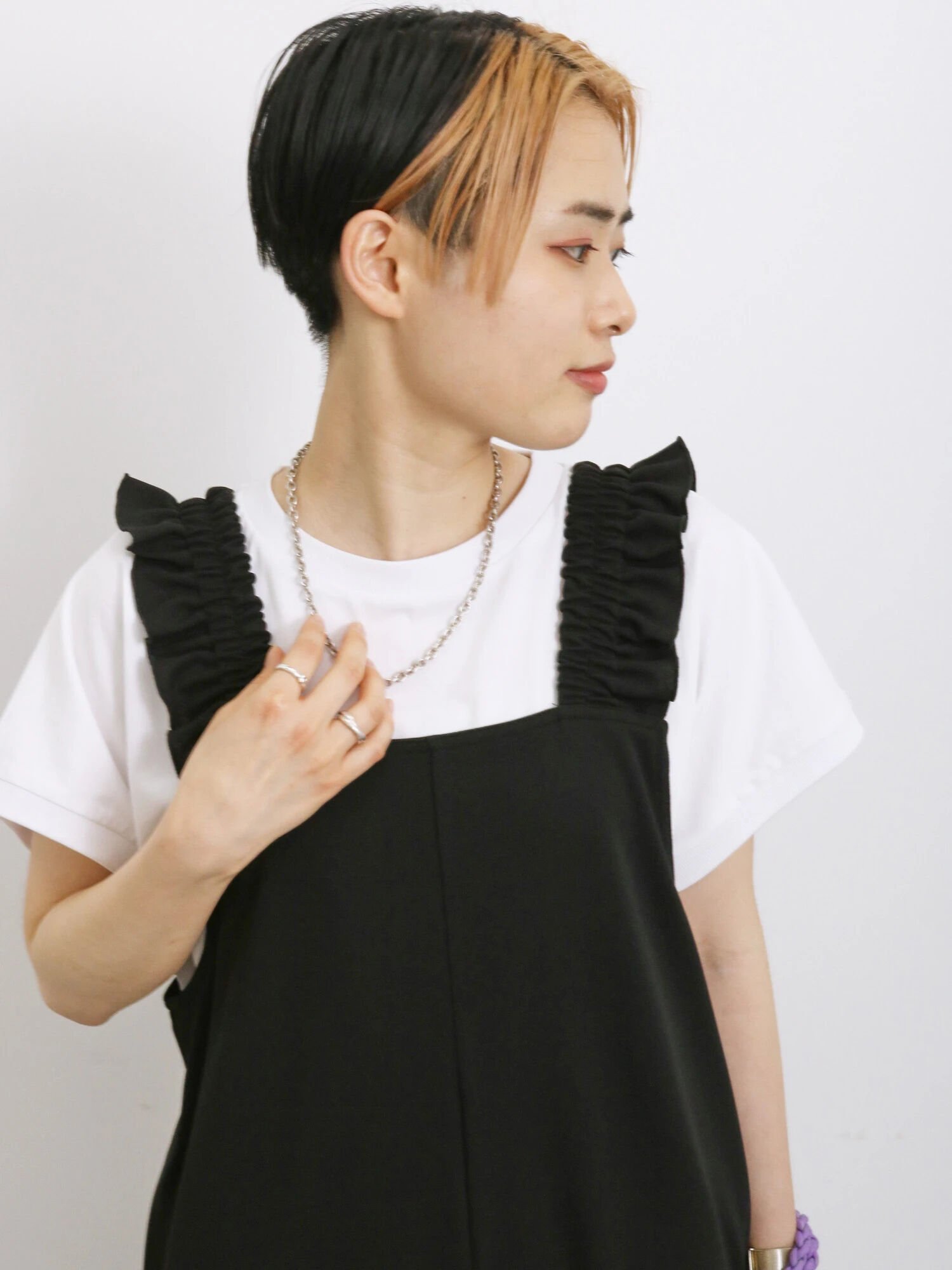 1枚で着るのはもちろん、手持ちのベルトでウエストマークをしたり、ボトムスとレイヤードしたりと、幅広いスタイリングが楽しめるアイテムです。