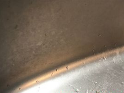 ステンレスシンクの白い水垢はこすれば薄くなりますが、結構力を入れてしっかりとこすっても完全には落ちません。