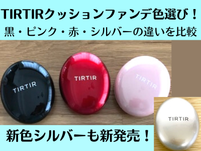 TIRTIR ティルティルのクッションファンデの色選び(色比較)。違いを赤、黒、ピンク、シルバー4種類で比較